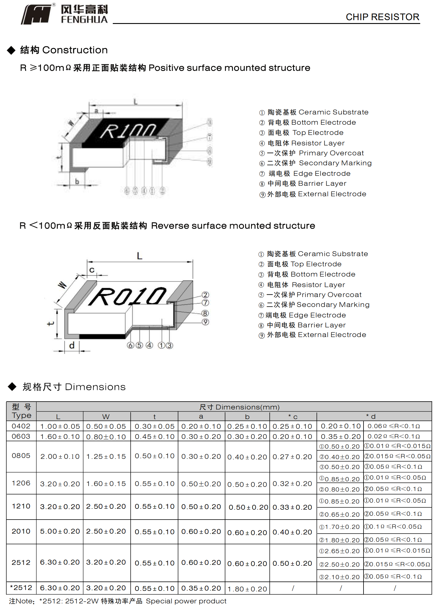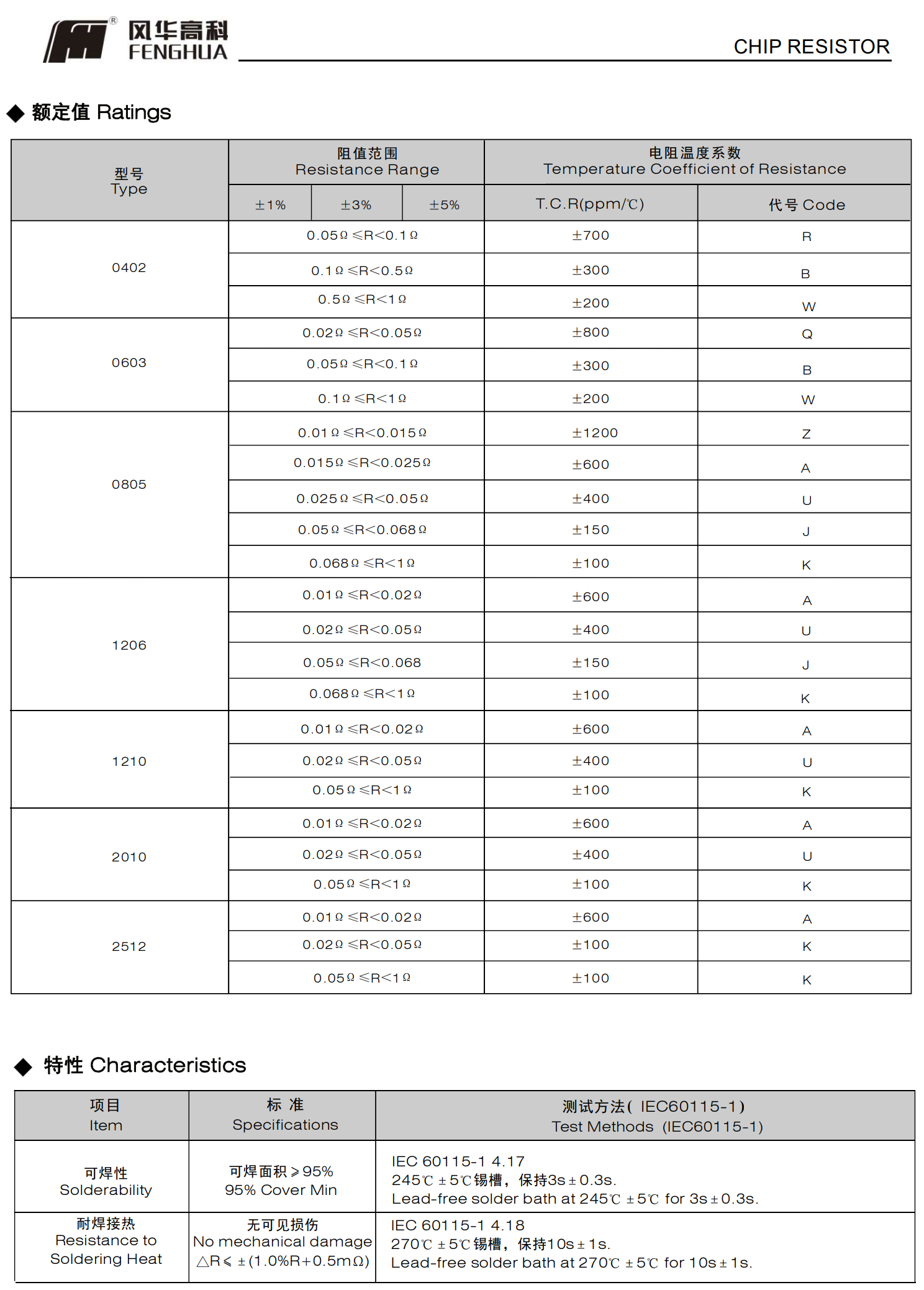 低TCR超低阻值厚膜片式固定电阻器