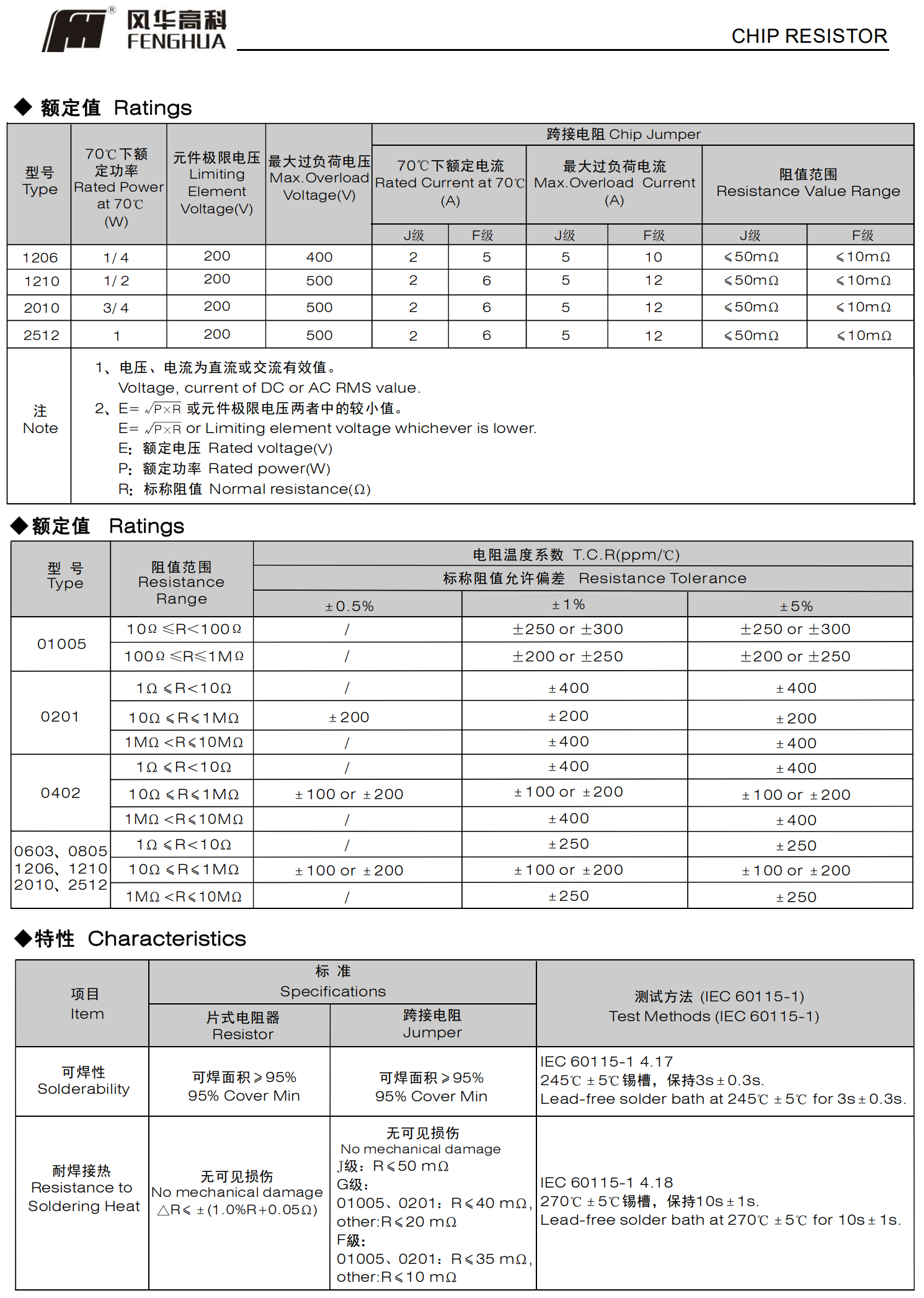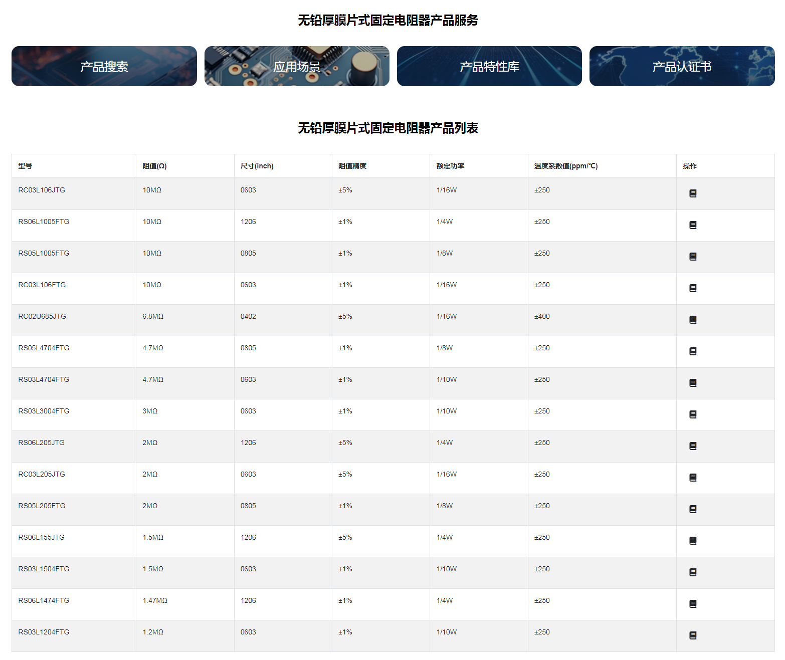 无铅厚膜片式固定电阻器体积小、重量轻适应再流焊与波峰焊电性能稳定,可靠性高装配成本低,并与自动贴装设备匹配机械强度高、高频特性优越符合 指令要求符合无卤素要求整体铅含量低于100ppm潮敏等级:MSL1应用领域:广泛应用于家电、计算机、通讯、工业自动化及消费类电子产品等领域。