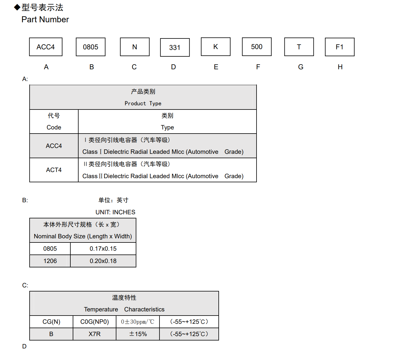■车规径向引线多层陶瓷电容器◆特征:* 汽车等级、具有高可靠性;* 优良的焊接性和耐焊性,适合于波峰焊* 环氧树脂封装,从而具有优良的防潮性能、机械强度及耐热性◆应用:* 已通过 AEC-Q200 标准设定了所有实验条件。
