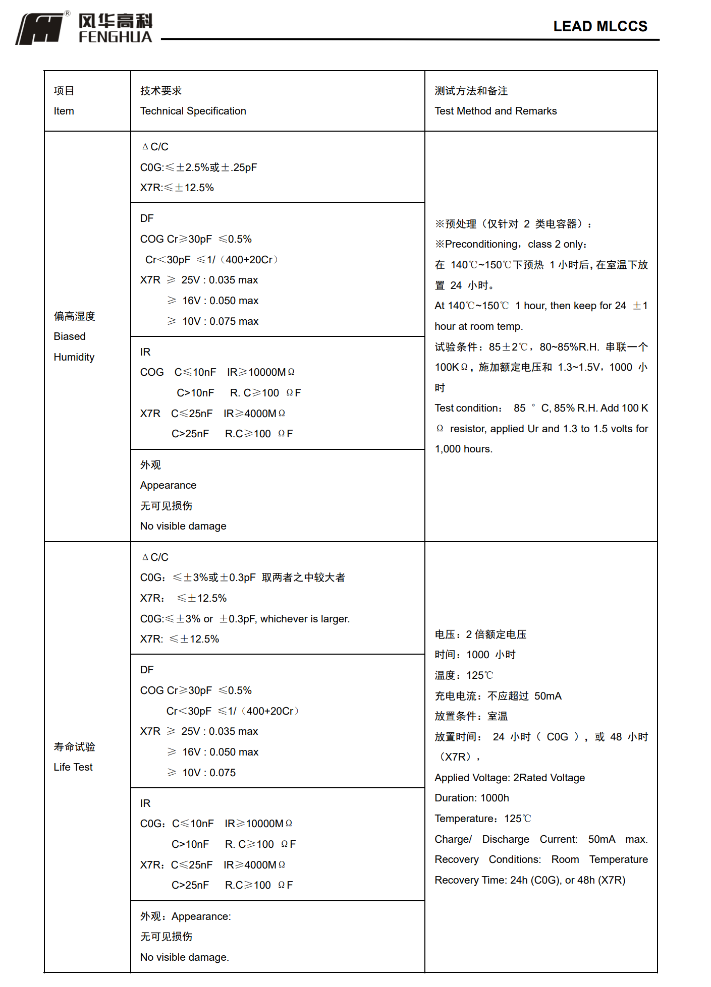 * 已通过 AEC-Q200 标准设定了所有实验条件。