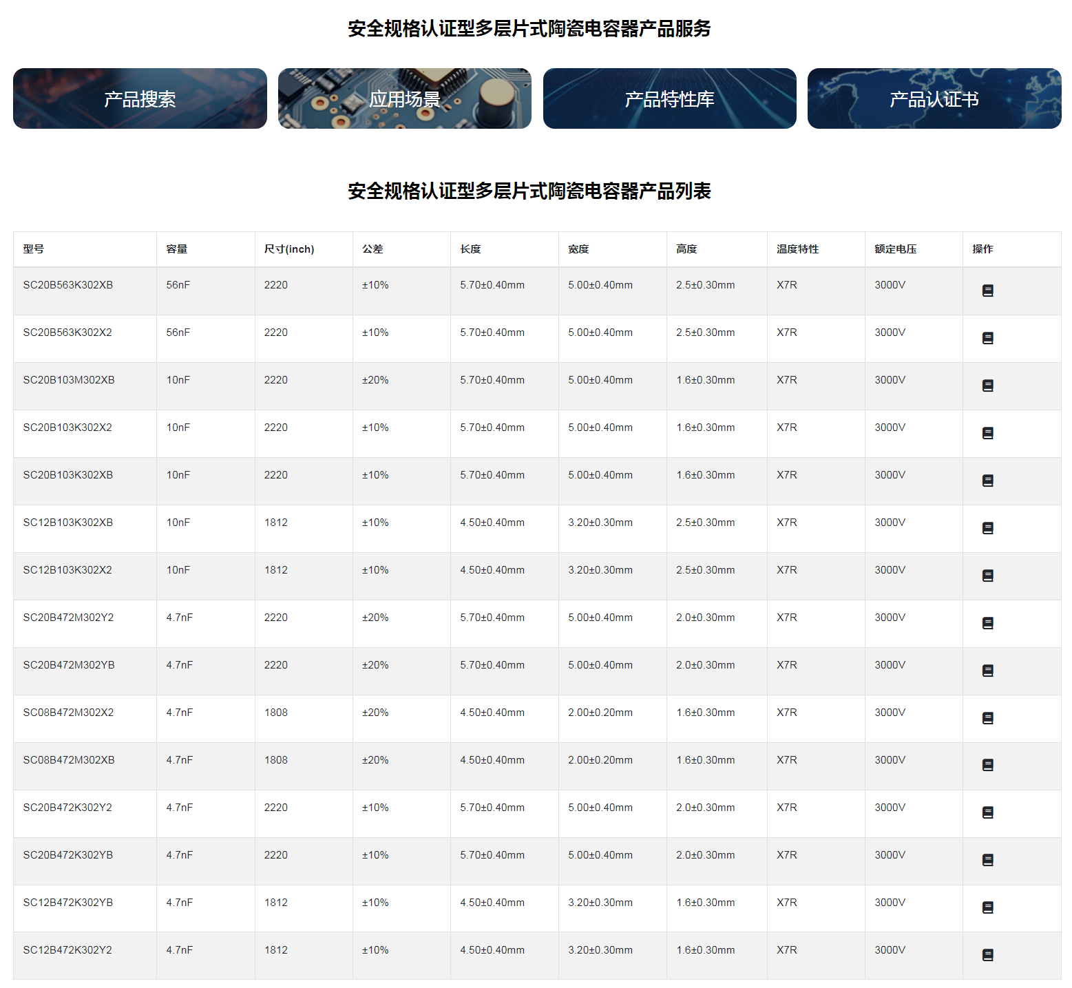 ■ 安全规格认证多层片式陶瓷电容器◆ 特征* 新型独石结构,体积小,电容量高,能在高压下工作* 符合 60384-14 标准。* 仅用于回流焊接* 它们实用于薄型设备。◆ 应用* 适合于无变压器的 DAA 调制调解器线路滤波器及耦合用* 适合信息设备线路滤波器用。