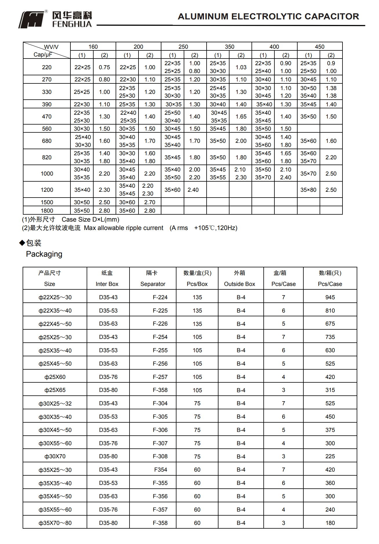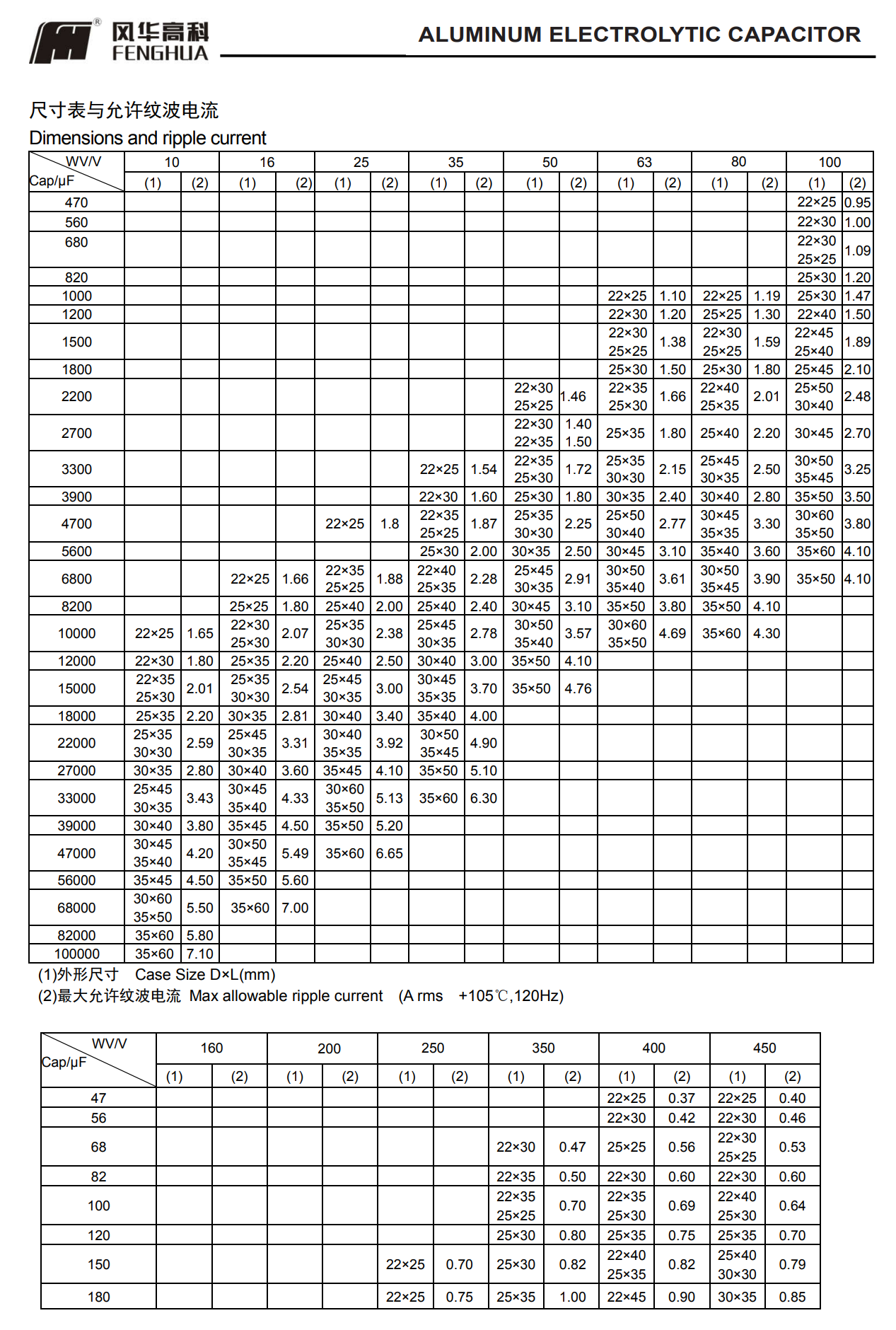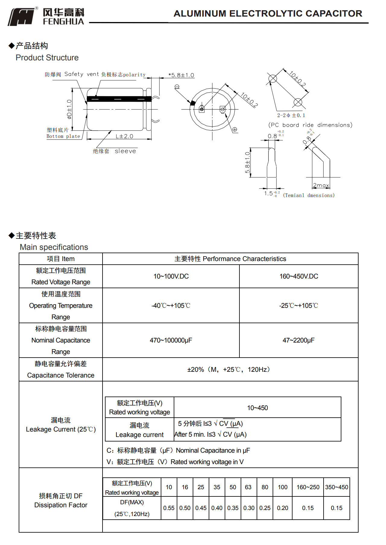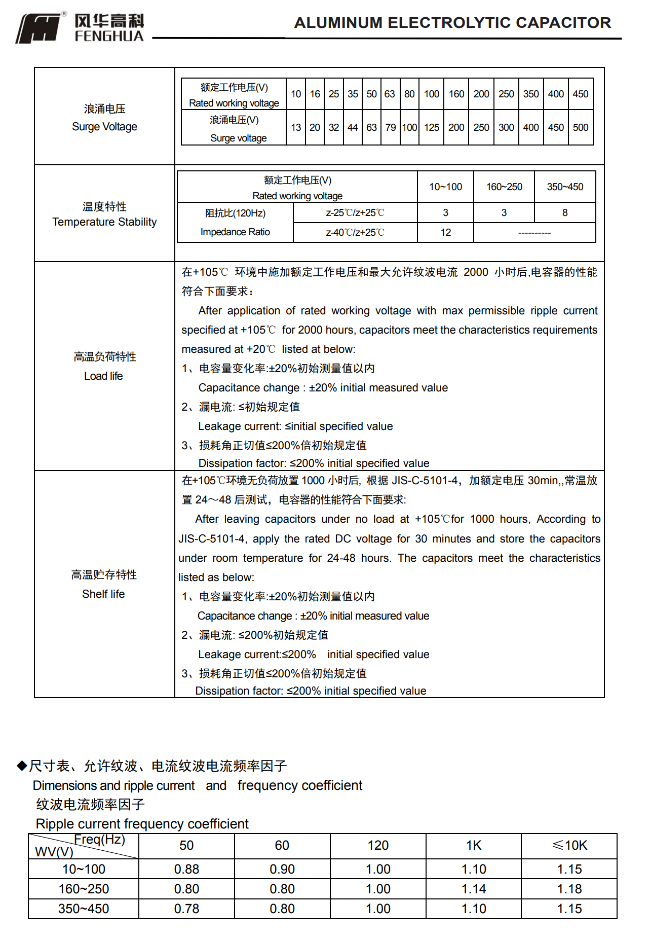 * 寿命: 105℃ 2000 小时