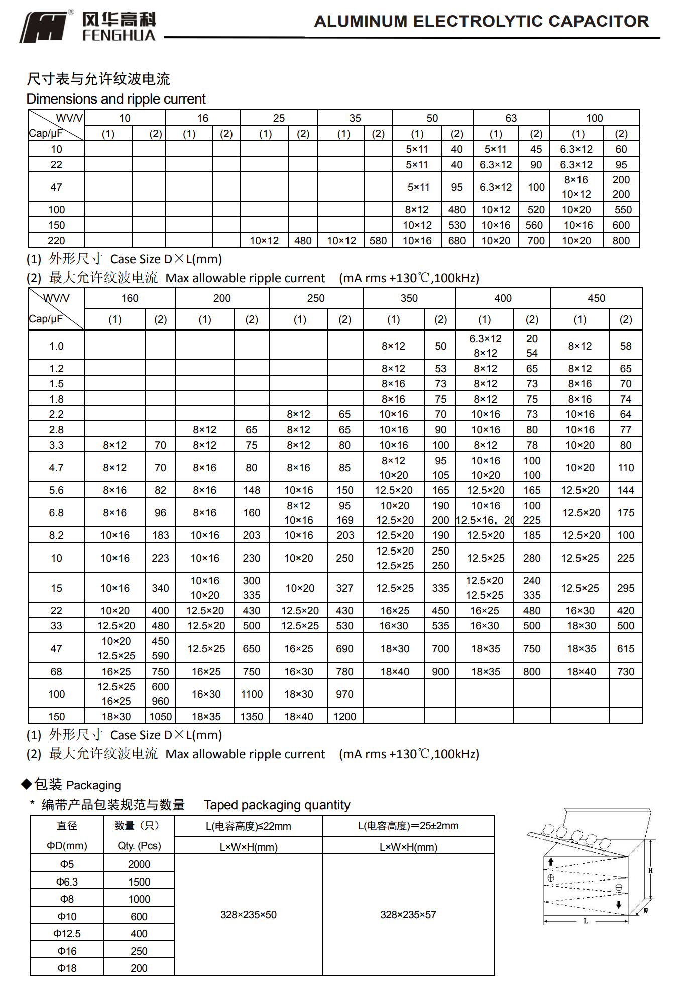 ■RV系列130℃长寿命引线型电解电容器◆特征* 寿命: 130℃ 3000~5000 小时* 耐高温* 符合 RoHS◆应用:*适用于汽车电子 、各类开关电源、LED 照明产品 、 LED 驱动器等电子产品