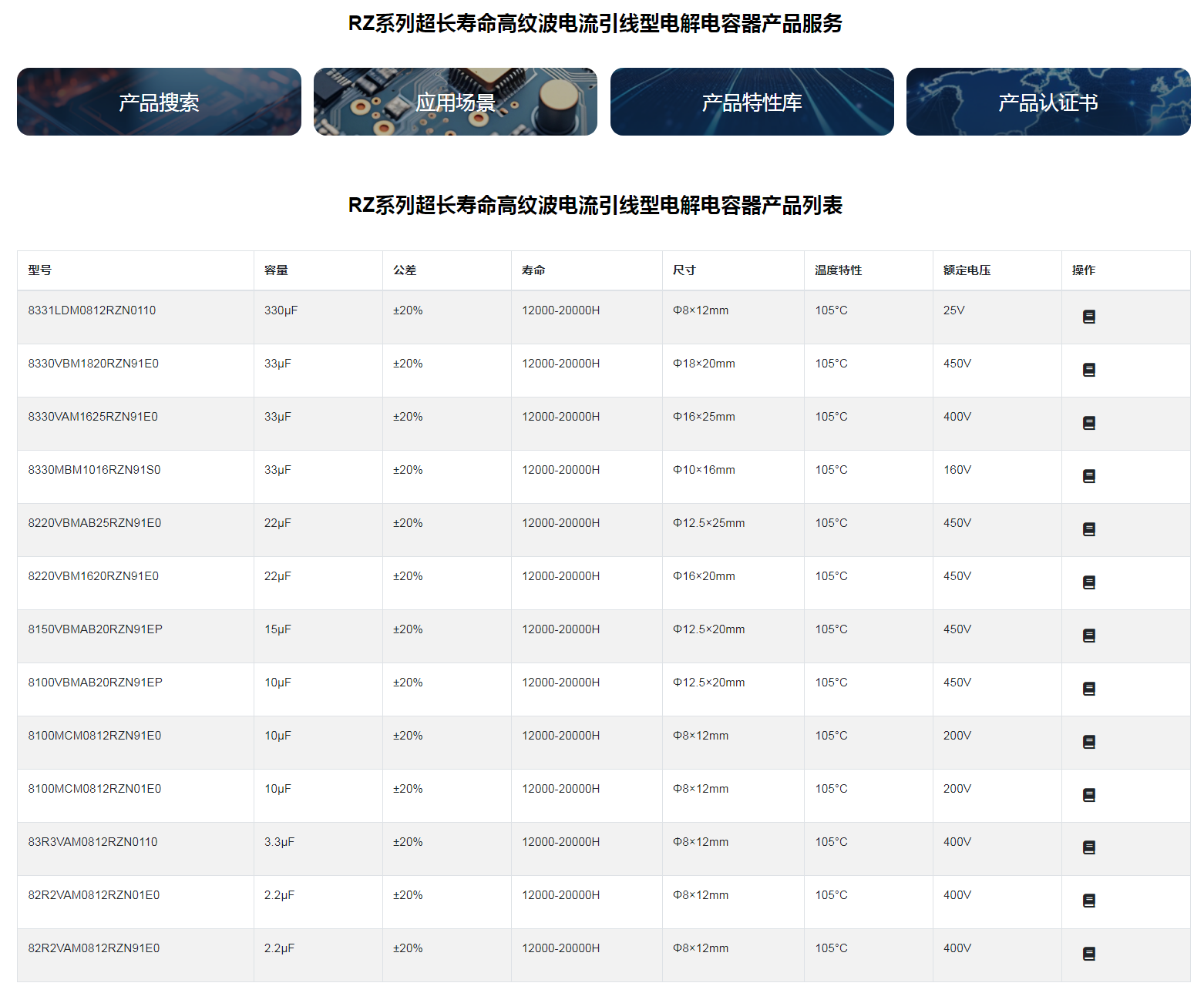 ■RZ系列超长寿命高纹波电流引线型电解电容器