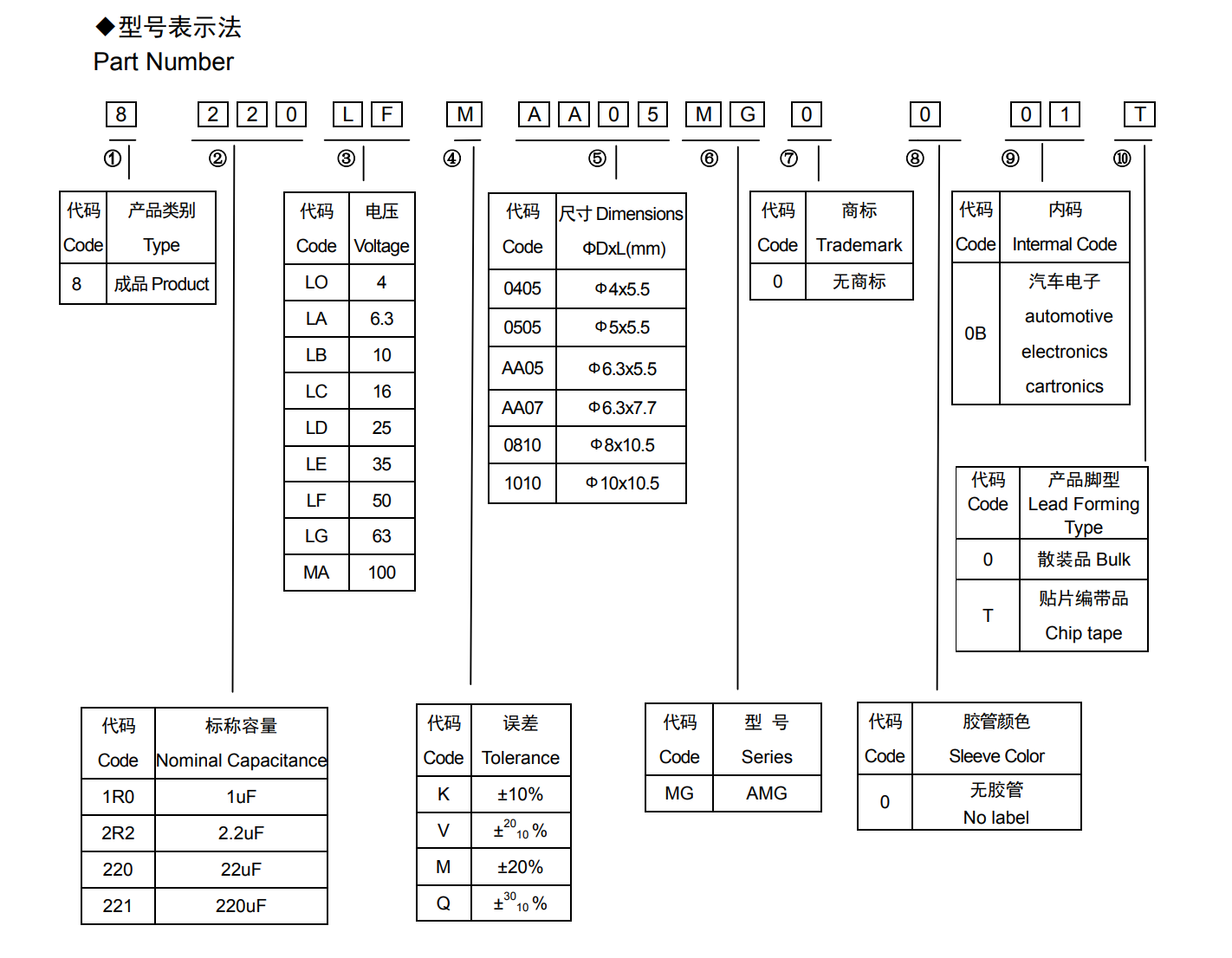 ■AMG车规系列长寿命贴片型电解电容器◆ 特征* 寿命: 100℃ 8000 小时* 符合 RoHS* 符合 AEC-Q200◆应用* 适用于汽车模块电子产品和耐高温环境应用环境产品* 适用于自动表面贴装技术和高密度电路