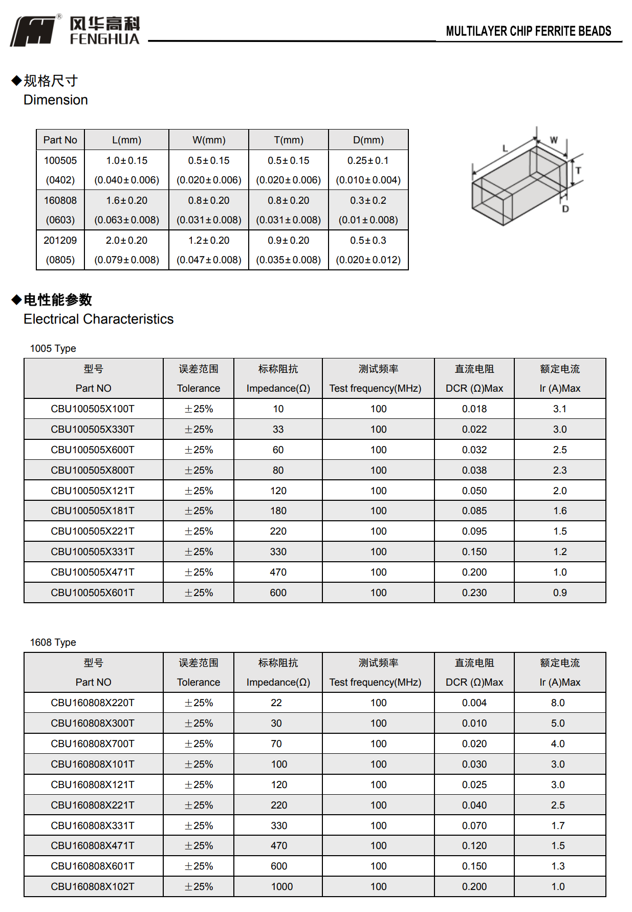 叠层片式铁氧体超大电流磁珠(CBU)◆特征* 体积小* 低直流电阻,超大额定电流* 漏磁小,不产生耦合,可靠性高* 无引线,不产生跟踪性,适合高密度表面贴装* 优良的可焊性及耐热冲击性,适合回流焊◆应用*用于通信设备、计算机、液晶电视等电气设备的电源线或超大电流信号线的噪声抑制。
